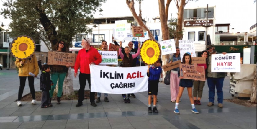 sık sık İklim İçin sesi Yükselt , Uyuma Bodrum İklim İçin ses Çıkar, Farkına Varan Hareket Geçer, İklim Grevi Hepimizin Görevi sloganları attı. Eylemde 29 Kasım Cuma günü saat 17.00’de Belediye Meydanı’nda “İklim Krizi Yaşayan İlk Nesil Biziz , Çözebilecek Olan Son Nesilde Biziz” Sensiz Olmaz Çoluk Çocuk Sende Gel , İklim İçin ses Ver sloganları ile düzenlenecek geniş kapsamlı eyleme katılmaya çağrıda bulundular.
